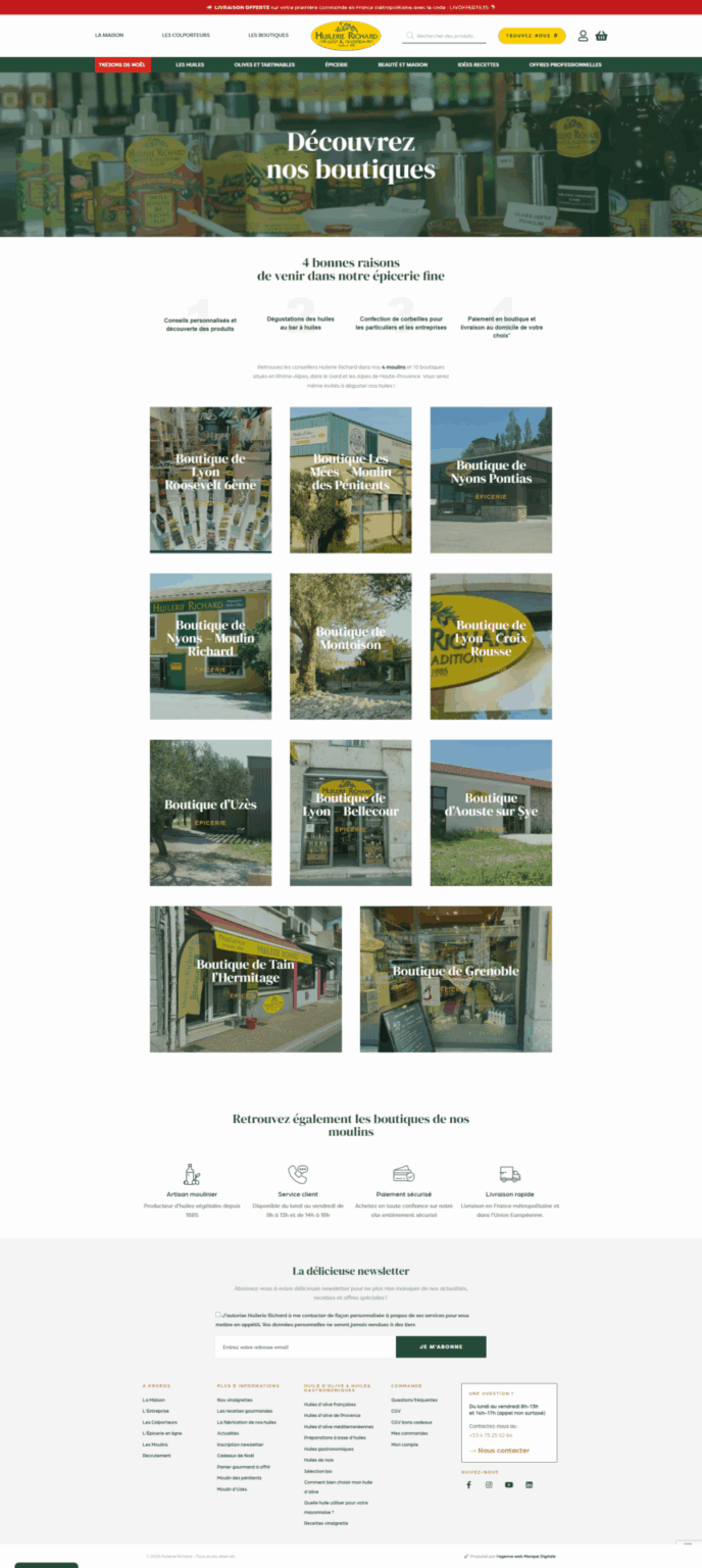 Concrètement, nous avons accompagné Huilerie Richard sur la création et l’évolution de ses sites e-commerce :