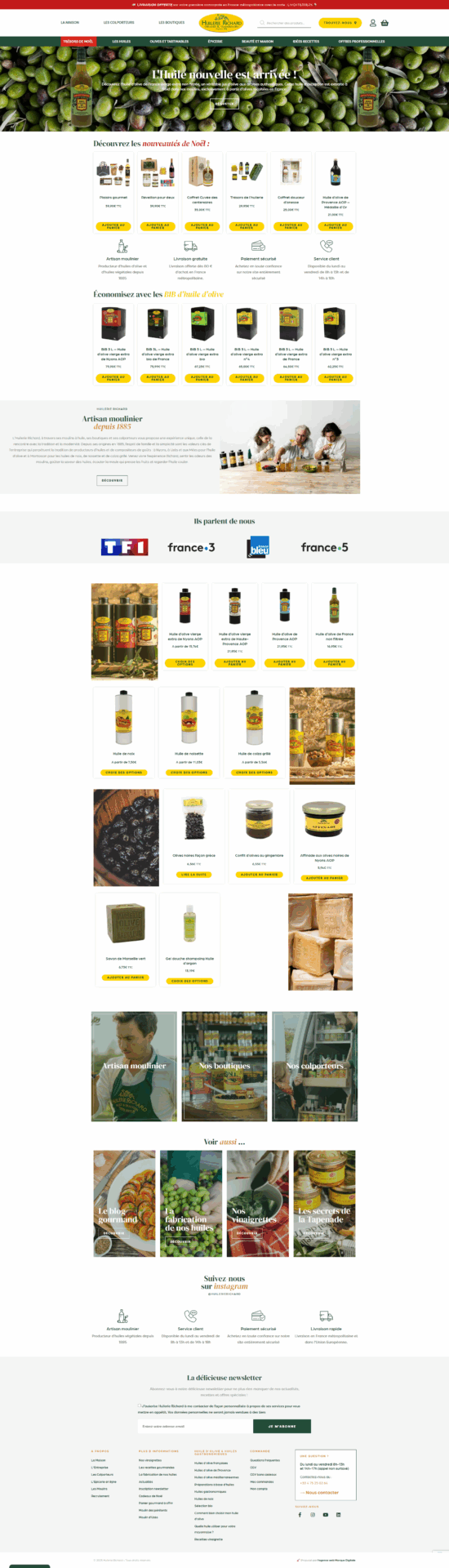 Concrètement, nous avons accompagné Huilerie Richard sur la création et l’évolution de ses sites e-commerce :