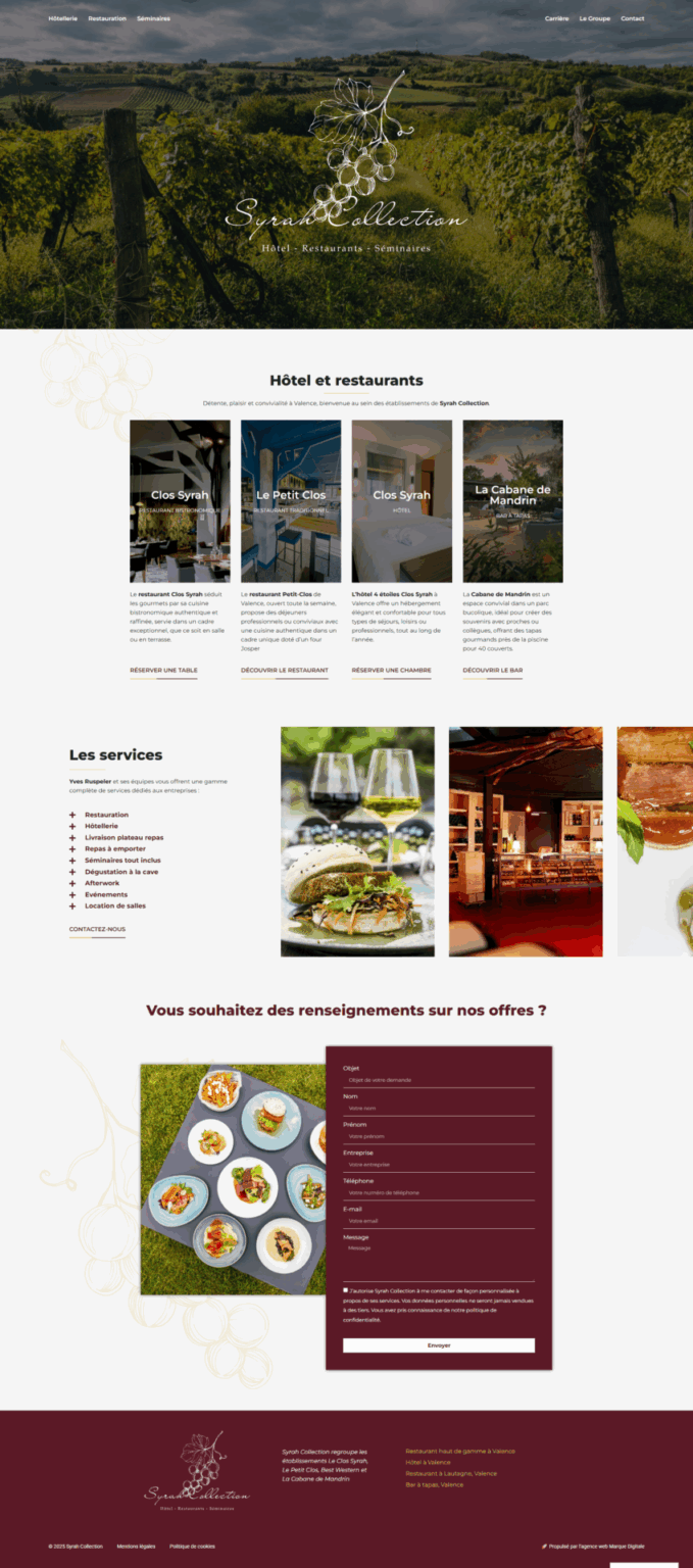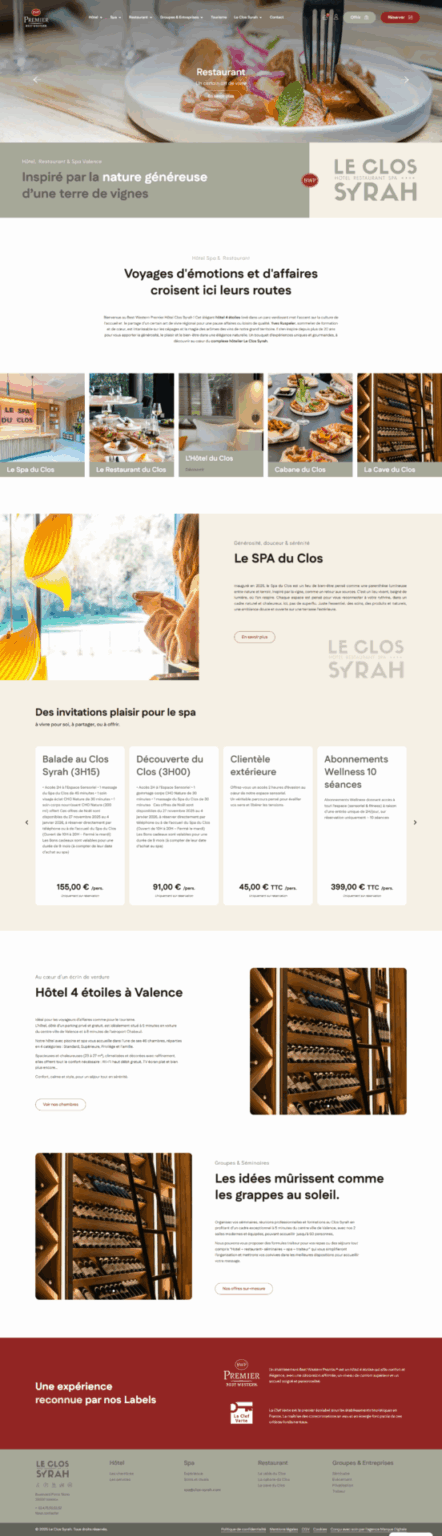 Nous avons travaillé des univers graphiques premium, respectant les codes du haut de gamme, tout en mettant en valeur l’identité propre à chaque lieu. Parallèlement, nous assurons un accompagnement continu, incluant des recommandations stratégiques, des ajustements techniques, des optimisations SEO et des évolutions fonctionnelles en fonction des besoins.